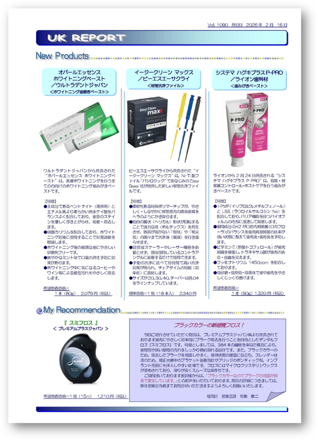 弊社では、最新の情報誌としてUKレポートを毎週発行しております。新製品情報や弊社営業がお勧めするマイレコメンデーション情報、ニュートピックス情報、コラム、そして新刊情報を掲載しております。