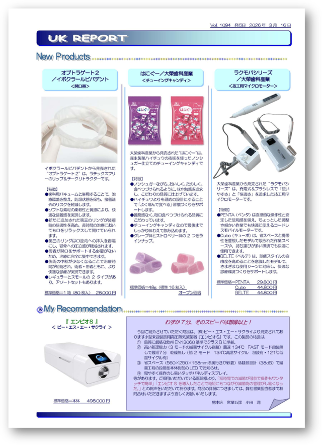 弊社では、最新の情報誌としてUKレポートを毎週発行しております。新製品情報や弊社営業がお勧めするマイレコメンデーション情報、ニュートピックス情報、コラム、そして新刊情報を掲載しております。