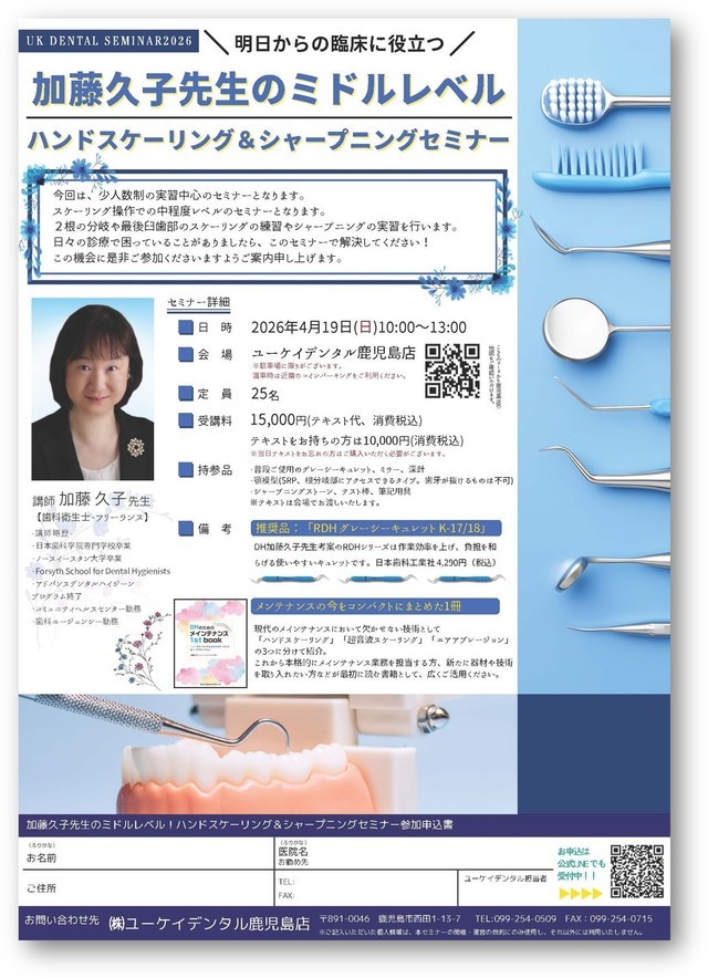 今回は、スケーリング、TBI時におけるDHのお困りごとにスポットをあてて、ワンポイントレッスンを交えながらのセミナーを企画いたしました。