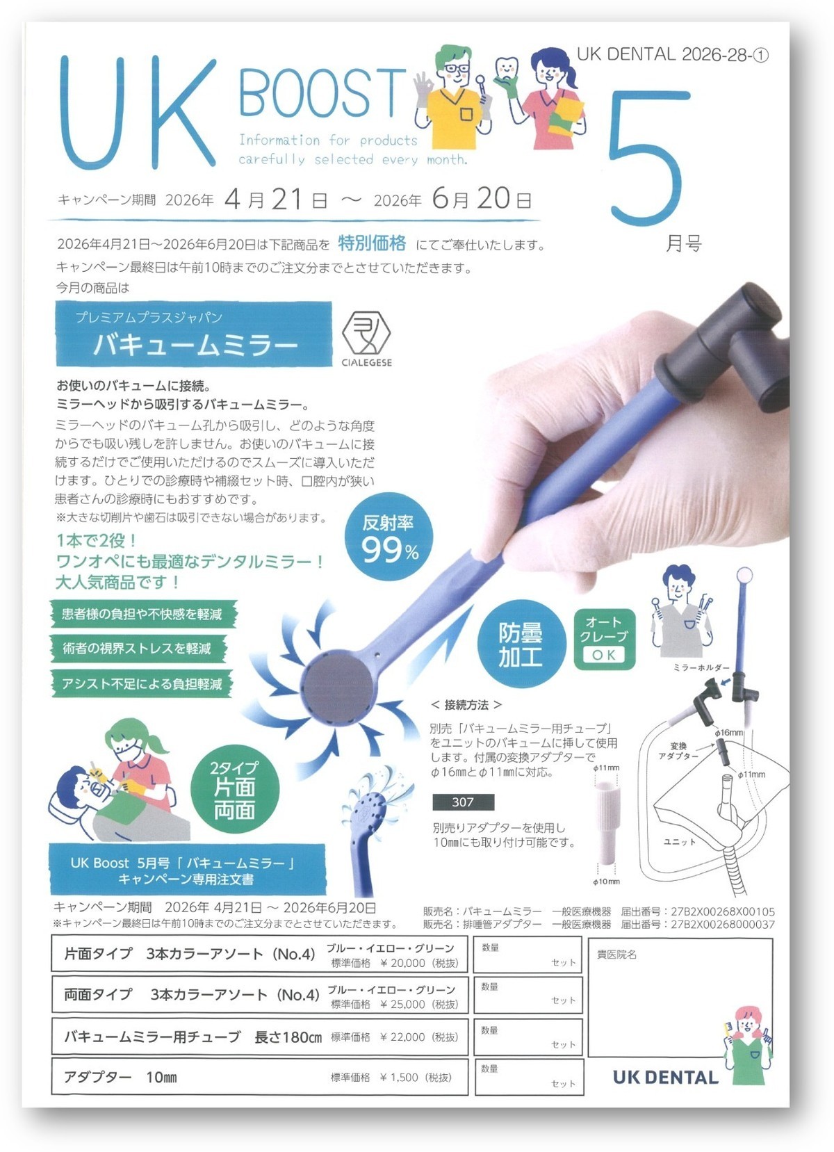 診療効率の向上をサポートする製品として、「プレミアムプラス バキュームミラー」をご案内いたします。