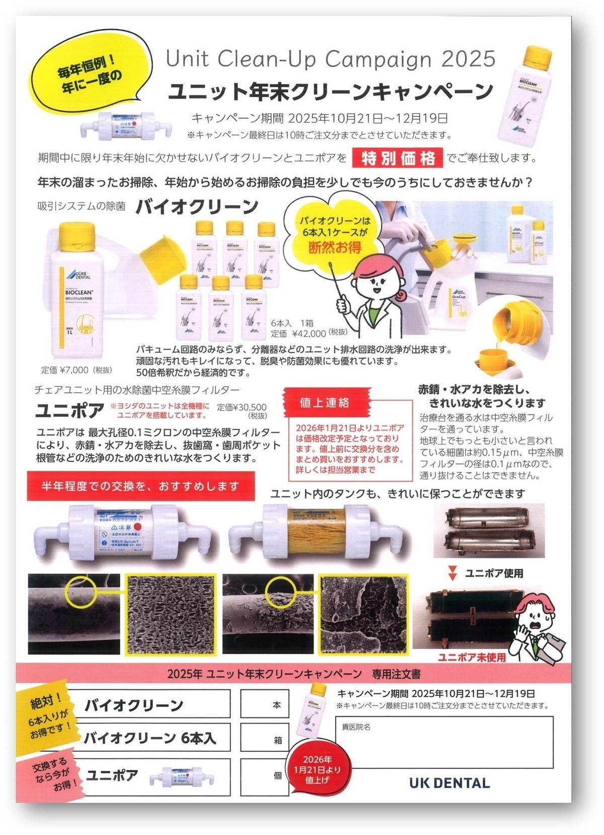 年末年始のお掃除に欠かせない バイオクリーン と ユニポア を、特別価格でご提供いたします。